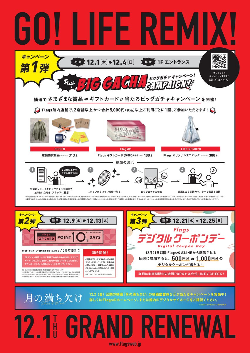 【Flags(新宿フラッグス)が12月1日(木)にグランドリニューアル!】新宿駅東南口の商業施設「Flags(新宿フラッグス)」が、1998年の開業以来初となる大規模リニューアルを経て、12/1(木)..