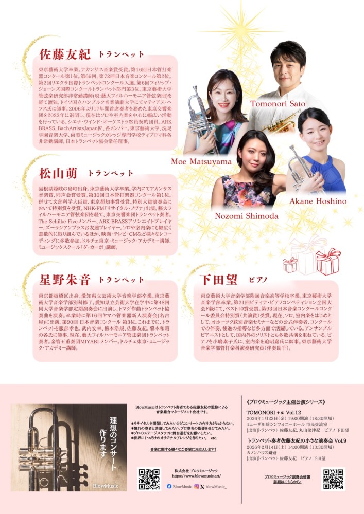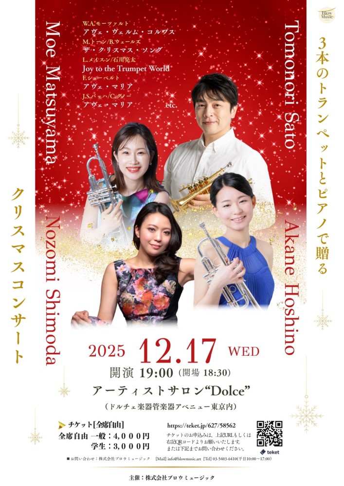 日本を代表する 3 人のトランペット奏者とピアノによるクリスマス・コンサートを開催いたします🎄