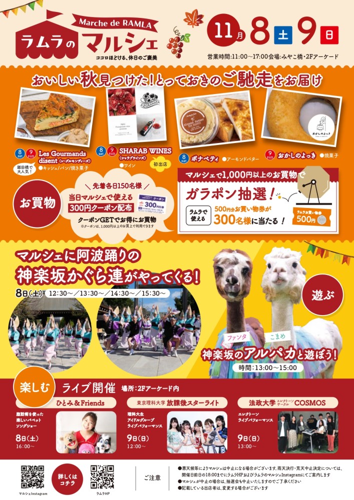 ■ラムラのマルシェで使える「300円クーポン」を当日配布します!2日間300名様限定