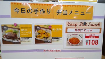 南館2階【みなっぷ】より本日の手作り弁当焼肉カレー丼460円ひれカツ丼440円牛肉コロッケ108円ホットスナックも同時販売です。食堂パス600円しっかり使おう!(^^)!談話室での飲食ができます皆様の..