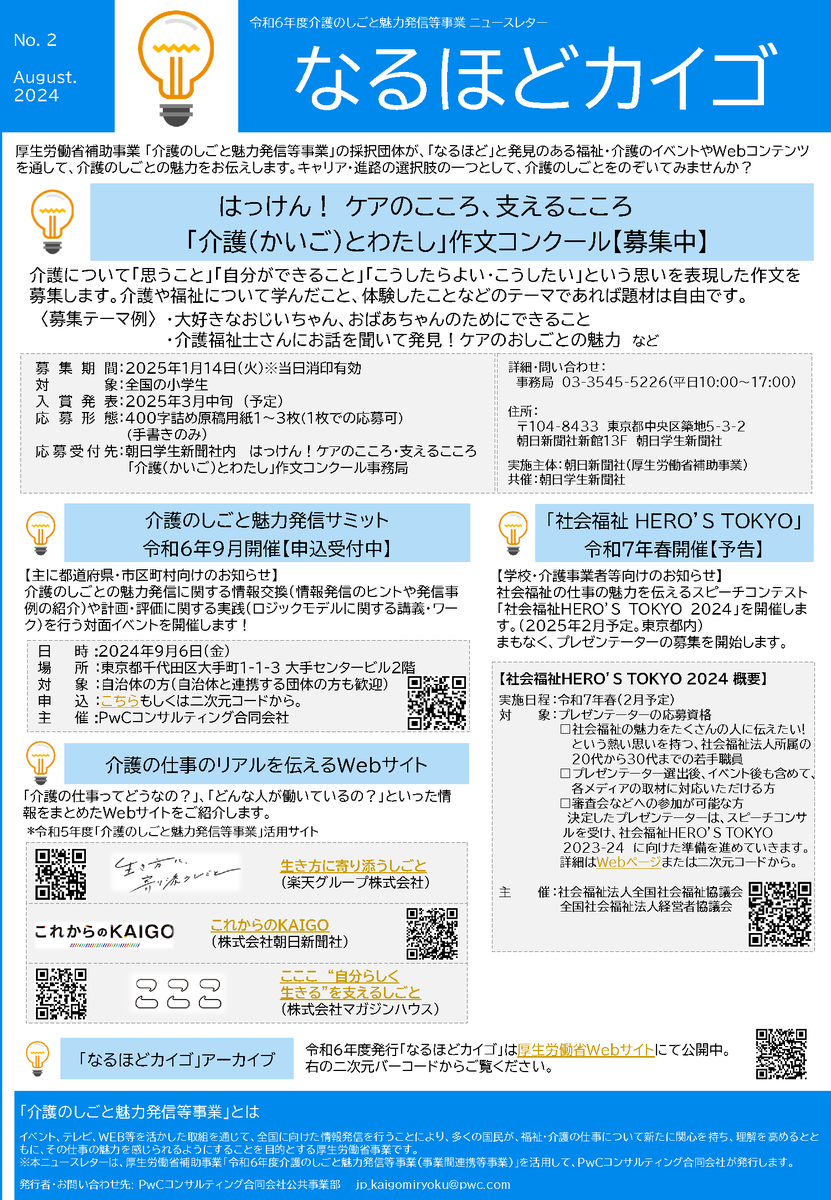 【#福祉#介護のしごとの魅力を発信!】ニュースレターNo.2今回はイベント等をご紹介・「介護とわたし」作文コンクール募集中・自治体向けイベント「介護のしごと魅力発信サミット」・#介護職員達によるスピー..