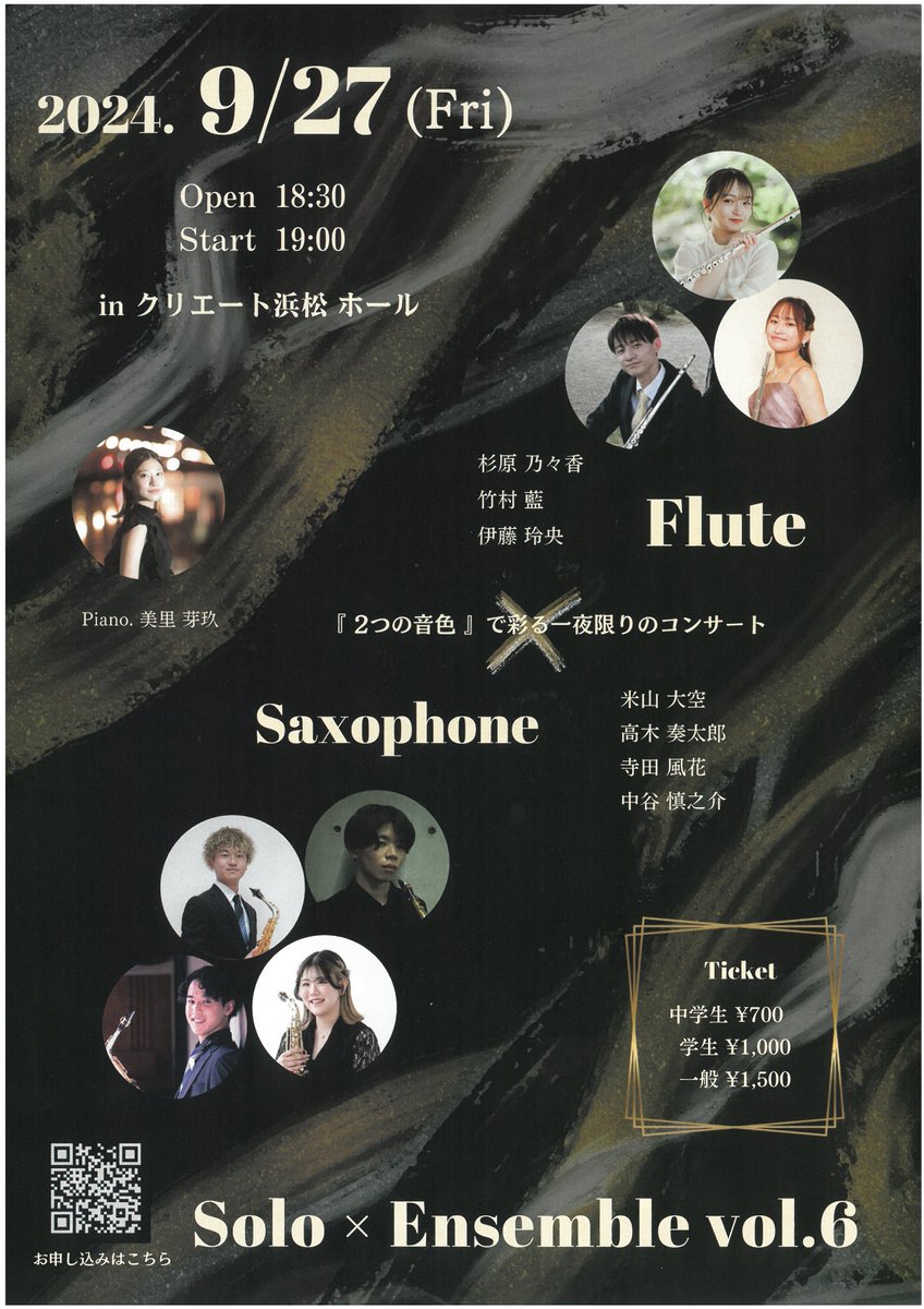 【イベント情報】チラシをお持ちいただきました♪Solo×Ensemblevol.62024/9/27(金)2Fホール開場18:30開演19:00Solo×Ensemblevol.6|イベントカレンダー..