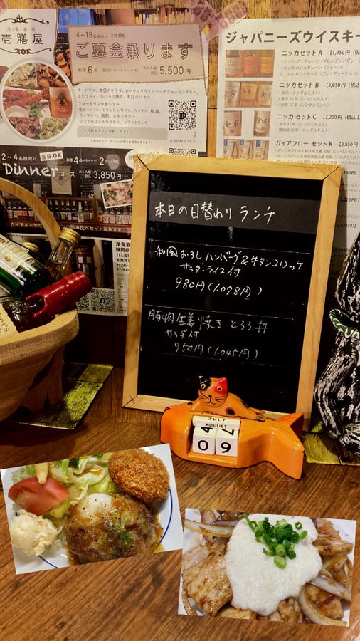 8月9日(金)日替わりランチメニューはこちらです#沼津#北口#ランチ#ごはん#グルメ#沼津グルメ#洋食#海老フライ#オムライス