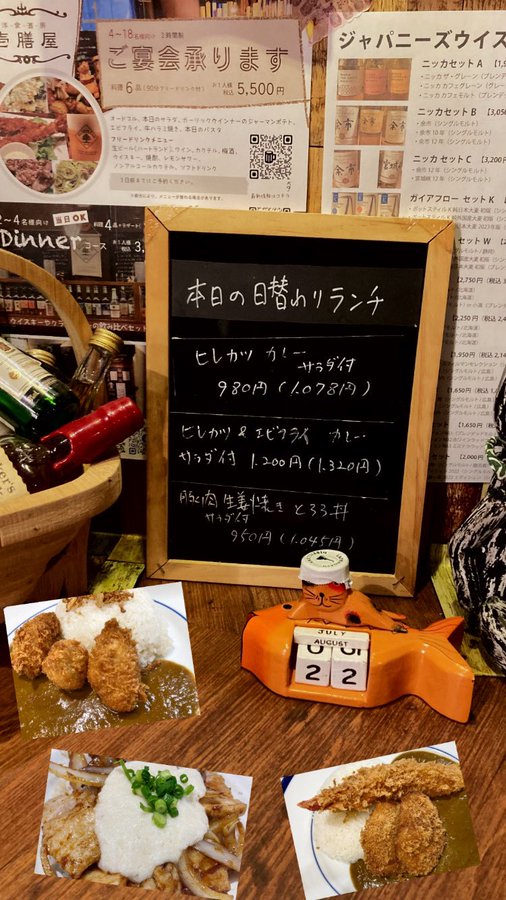 今日の日替わりランチメニューはヒレカツカレーヒレカツ&海老フライカレー豚肉生姜焼きとろろ丼ご来店お待ちしてます!#沼津#北口#ランチ#ごはん#グルメ#沼津グルメ#洋食#海老フライ#オムライス