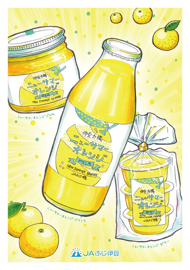 \人気商品がポスターに/下田市のイラストレーターTUTiさんが描いた#ニューサマーオレンジ商品のポスターが完成道の駅「開国下田みなと」内のJA直売センターなどに飾られているよ初夏限定の味が楽しめるドリ..