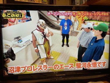 沼プロエース「駿河永悟」テレビ出演!静岡朝日テレビの霜降り明星がホストを務めるバラエティ番組「あてみなげ」での沼津特集で、キン肉マンミュージアム紹介のコーナーでエイゴマシンが登場!すぐにマスクを取り「..