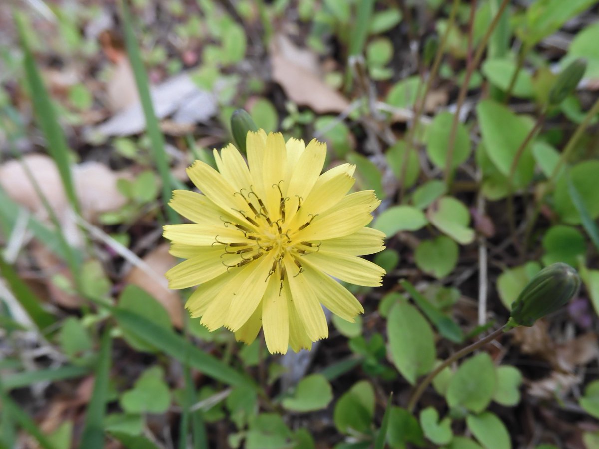 とても似ているのですが、葉の形が丸いのがジシバリ(左)で全体的にジシバリ(右)より大型で細長いヘラ型の葉を持つのがオオジシバリです。