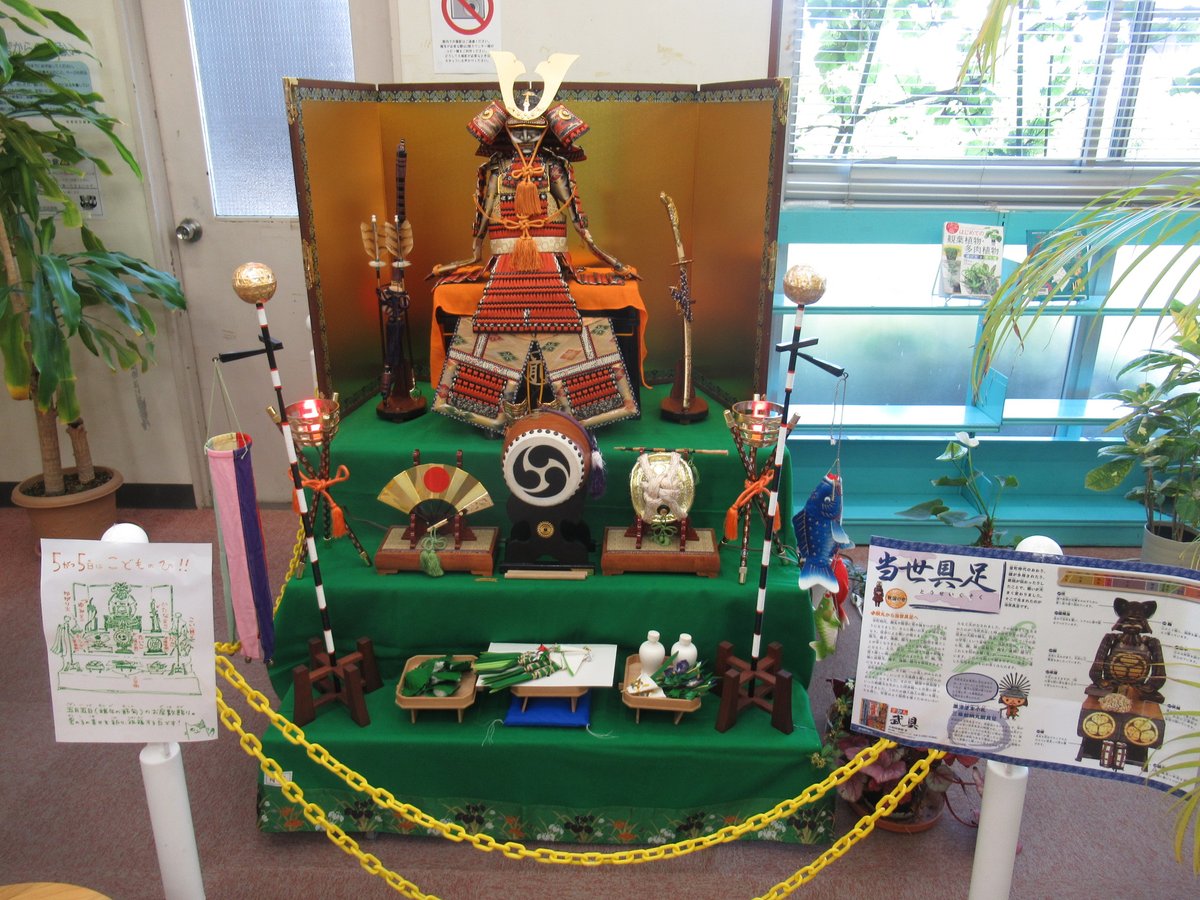 今日はこどもの日ですね。宮前図書館の中二階では五月人形を飾っています。お出かけのついでにぜひ図書館にもお立ち寄りください。