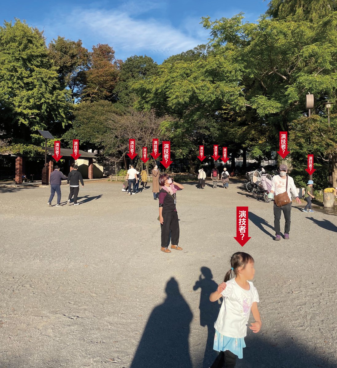 スマホからの指令に従って演技をする人が。多くの人の中で鑑賞者には誰が演技者かよくわかりません。でも何かが起こりつつあることは、ボンヤリわかる…。