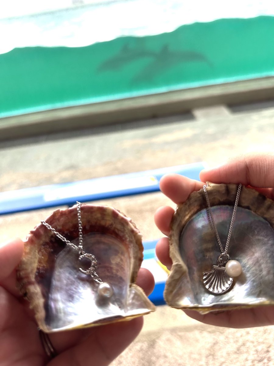 8/9(水)娘としながわ水族館へ行って来ました🐬🪼🐠 今回水族館へ行った目的は、 期間限定イベント開催中の アコヤ真珠取り出し体験🦪 愛媛県宇和島と長崎県産の 養殖アコヤ貝一個1,000円をネックレスに加工して頂き、親子で素敵な想い出ができました⚪️✨ #しながわ水族館 #真珠 #愛媛県 #長崎県