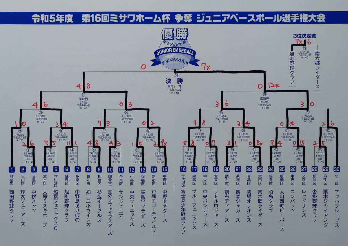 ○練馬旭町野球クラブ7x-6大田南六郷ライダース●