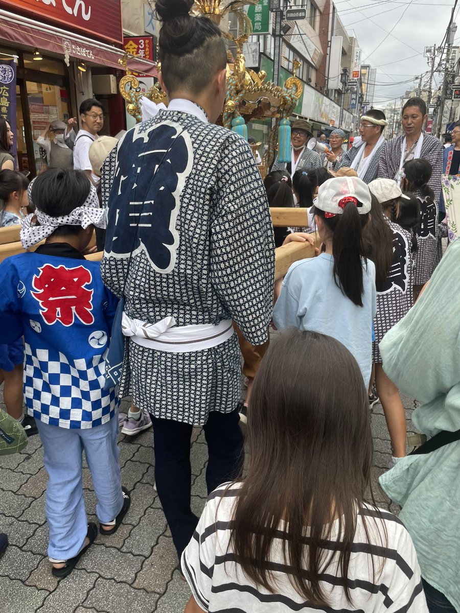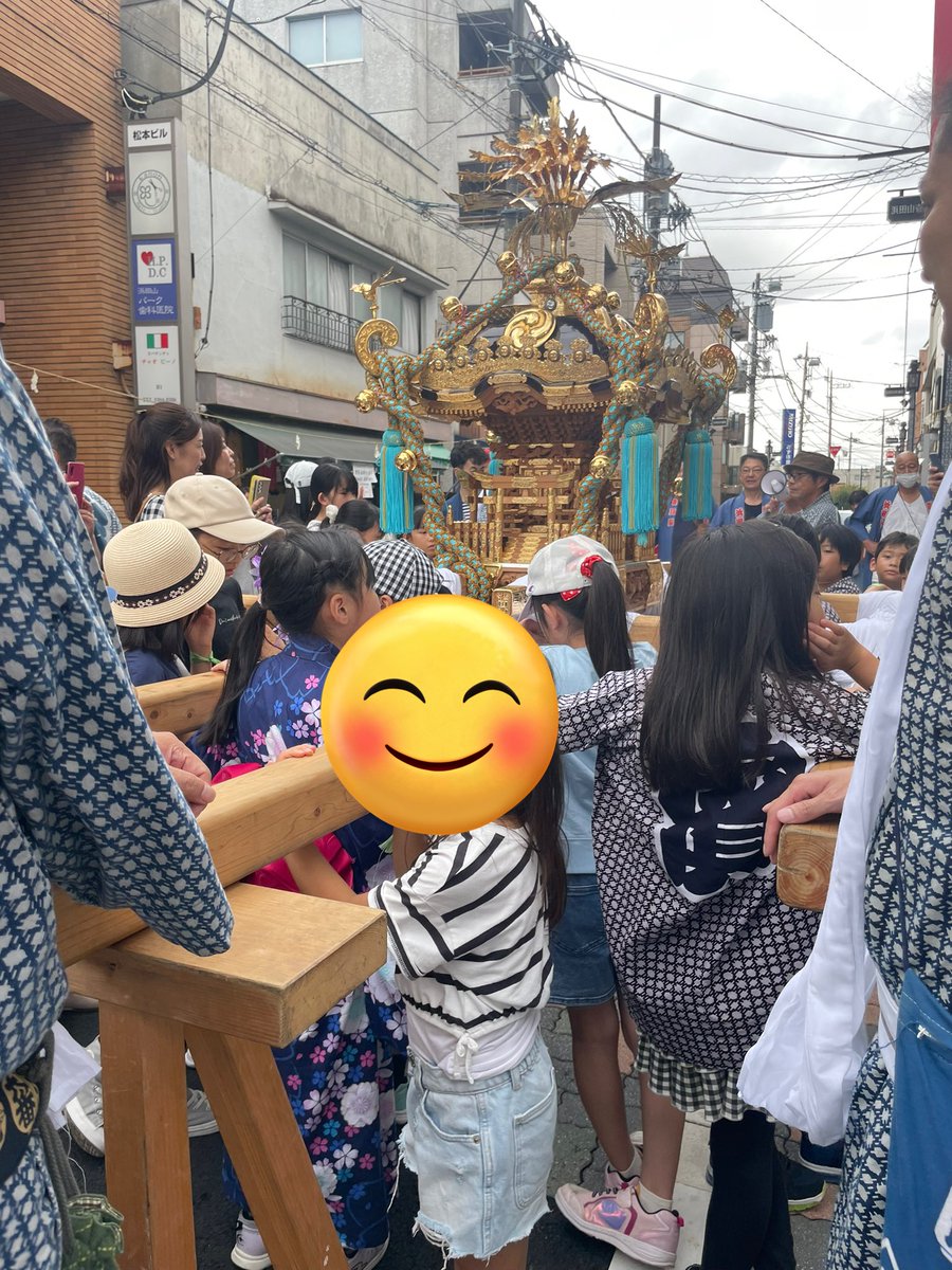 娘たち、子供神輿に参加しました❗️興味があるけど恥ずかしがりやの次女、神輿の近くを歩く→なぜか私の手を担ぐ→やっとお神輿担ぐ✨最後は、重かったーっと一言。お菓子もたくさんもらって大満足の娘たち。子供達が安全に楽しめたのも、地域の方のご協力のおかげです。ありがとうございました🙇‍♀️