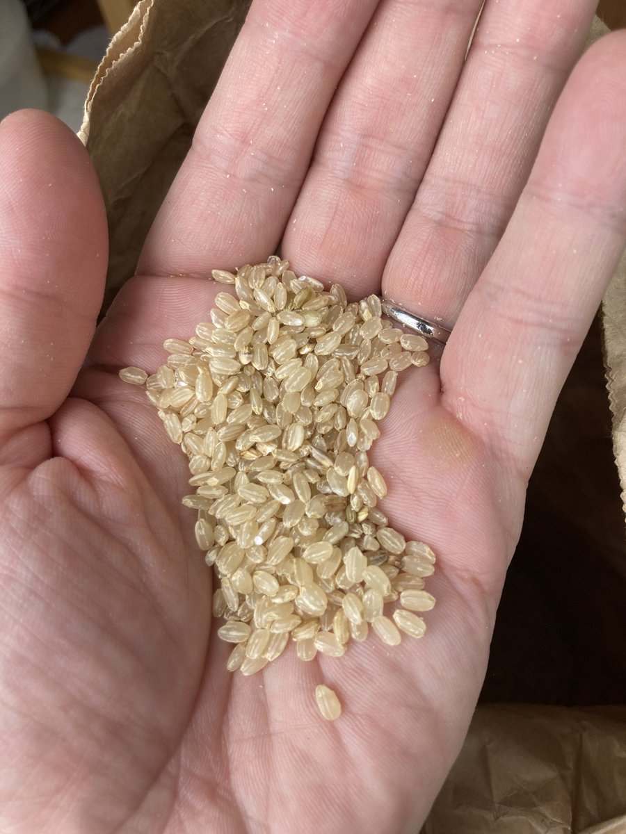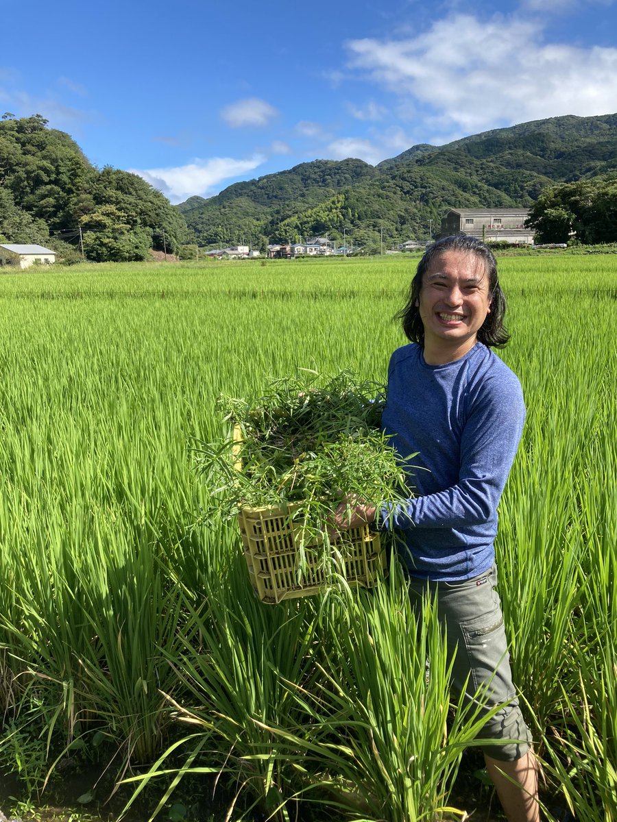 今月ウチの皆んなで育てた朝日米の収穫があります🌾この朝日が伊豆松崎酒店のオリジナル日本酒になります🍶造りを酒蔵さんにしていただく中で、精米や米の等級に関して色々調べています。米の等級が低いと純米酒と表示出来ない。等級を上げる為に農薬が使われるのかな。ウチのは無農薬、無除草剤です😌