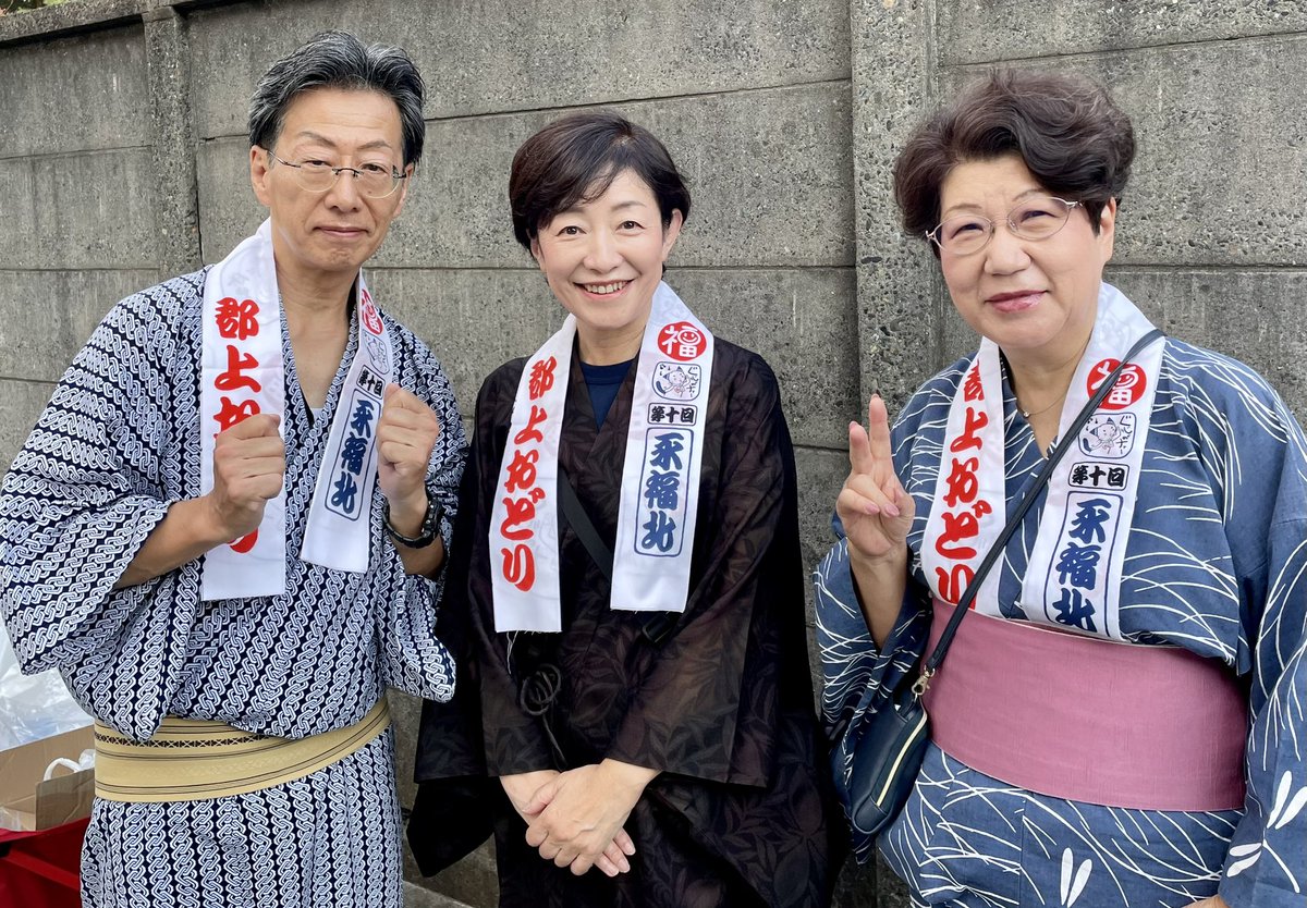 9/30 永福北口商店街で開催された「第10回郡上おどり」に、まつば都議、横山えみさんと参加。