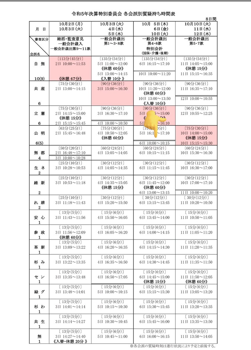 今日は決算特別委員会5日目10/6(水)、公明からスタートです。1人6分×会派の人数(時間内は何人で分けても良し)。連日質問が続く場合はハードです。他議員の皆さんそれぞれの切り口での質問が勉強になります。