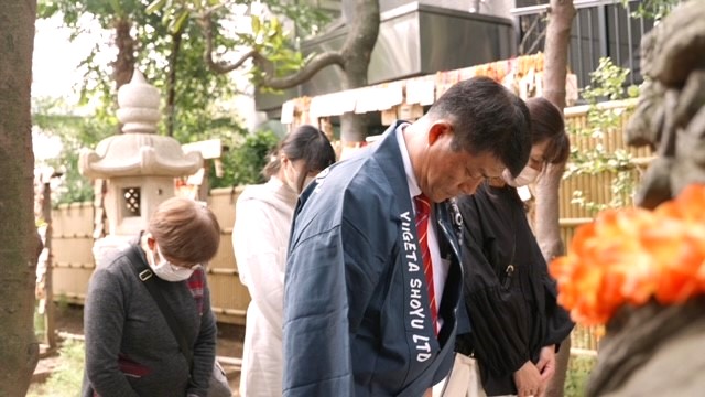 10月8日(日)弓削田醬油㈱様が御来臨されました。同社は日本で初めて火入れ、濾過なしで醤油を製造されました。今年は創業100周年にあたり、次の100年につなげる木桶製作期間が晴天となるように祈願させて戴きました。