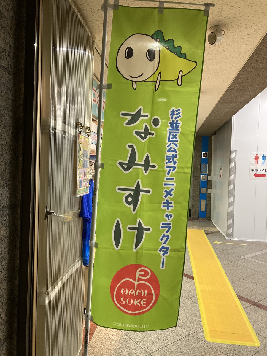 店前になみすけ旗があり、今まで気づかなかっただけ?先週はなかったような気がするけど…区外のみなさんもなみすけちゃんをよろしくお願いします👏