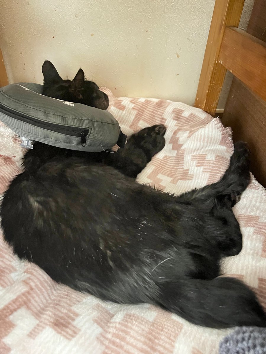 扁平上皮癌で3度目の手術をしたミントくん。口の中で癌がどんどん増殖してしまい、取っても取ってもなかなか追いつきません。次の手術は厳しそうなので抗がん剤も再開。痛痒く掻いてしまうと血だらけの大惨事になり、水に入れて使うなかなか高額な止血剤もかかせません。預かりさんが工夫して緩和ケア