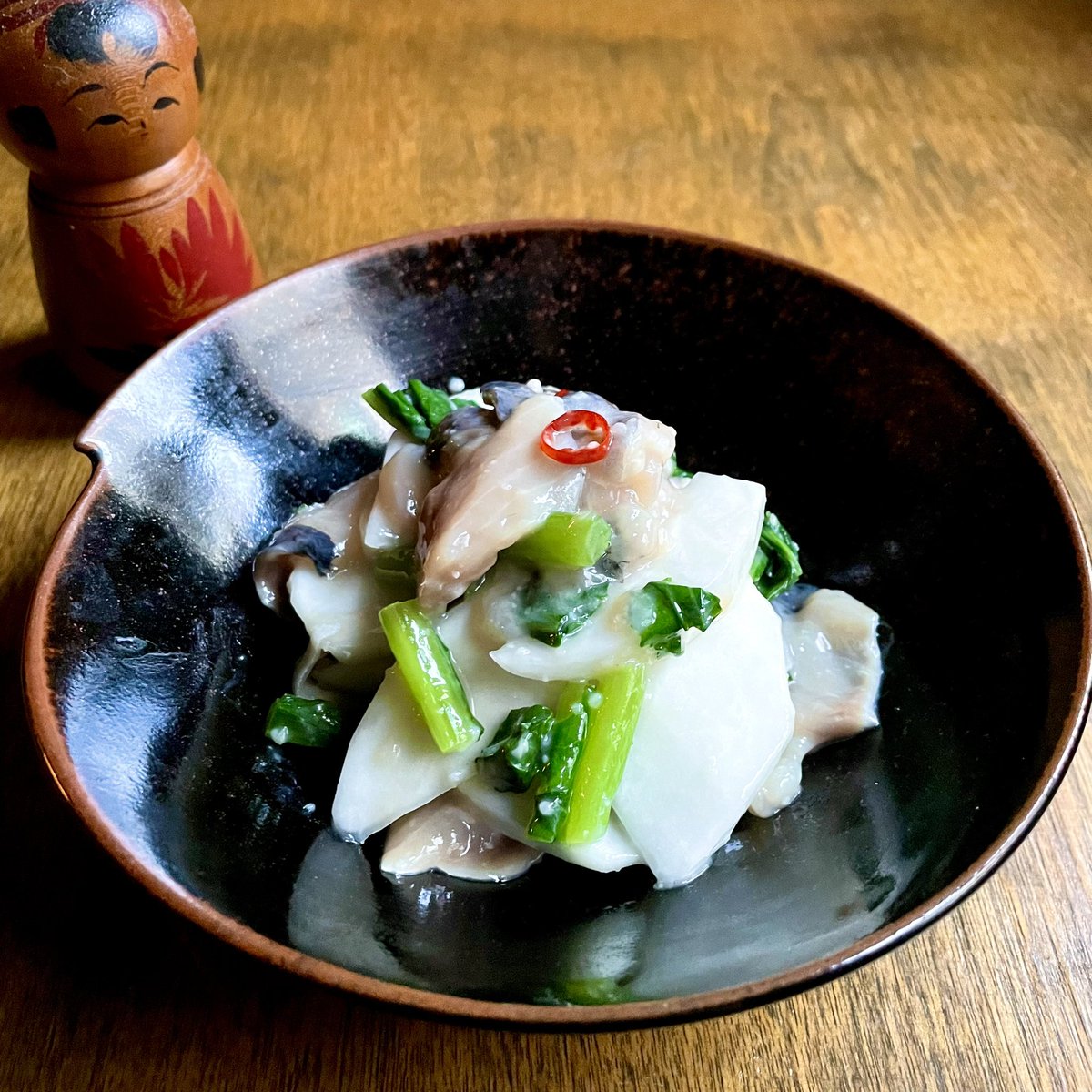 本日より新メニュー「あん肝入り茶碗蒸し」500円、「ニシンの切り込みとカブの和え物」600円😺。茶碗蒸しには、お出汁で煮たあん肝がゴロっとはいってます。切り込みは、生魚を麹で漬けて発酵させた郷土料理です🌊。両方ともお酒に良く合う味です🍶。