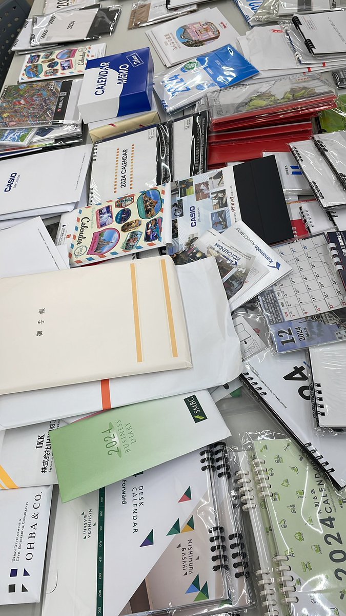 本日と明日と、カレンダー、卓上カレンダー、手帳の無料配布を致します。