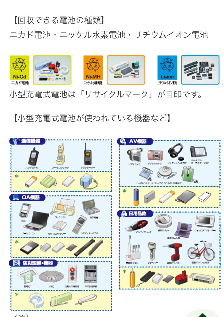 ゴミの分別についてお問い合わせを頂きました。確認すると機器から外せる電池(詳細は⬇️)はリサイクルボックス、外せない物は不燃物。