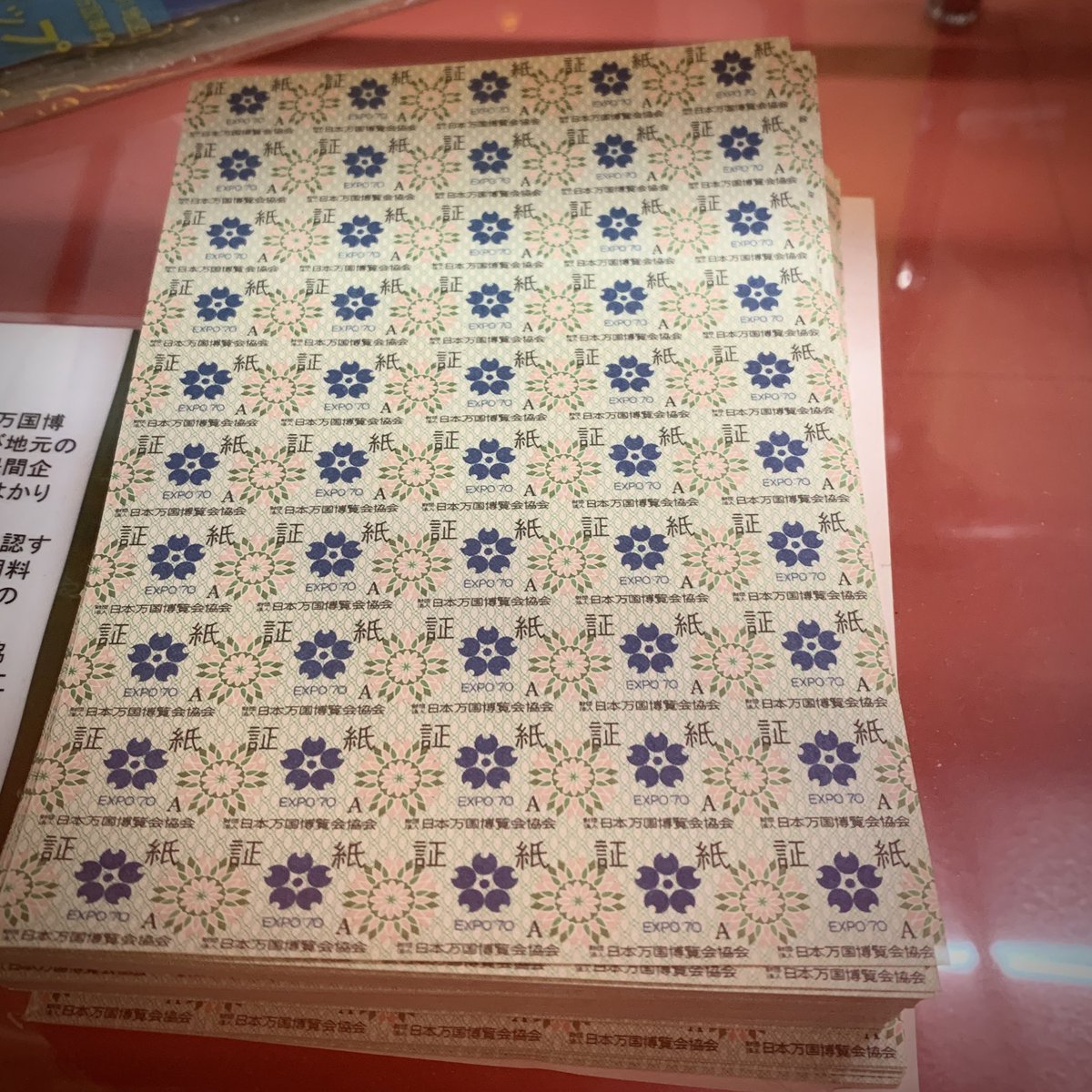 荷物に混ざってたエキスポ70'のファイルをペラペラめくってたら、関西蚤の市の時に見たEXPO'70パビリオンに展示してあった証紙が貼ってました(少し違う)。他の展示物はほとんど扱ったことがあるものでしたが、この束欲しいなぁ🤤とよだれを垂らして見ていたのでした。やっぱり欲しいなぁ…いいなぁ…