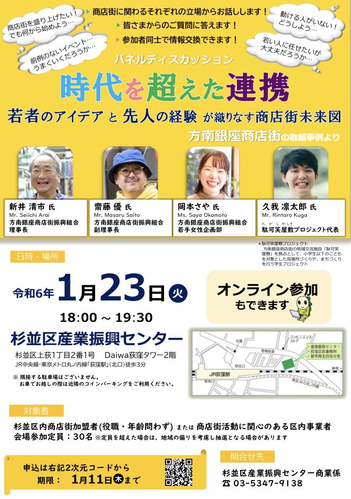 方南銀座商店街の仲間がこの後18時から杉並区のパネルディスカッションに出演します。お時間のある方は是非ご覧ください。