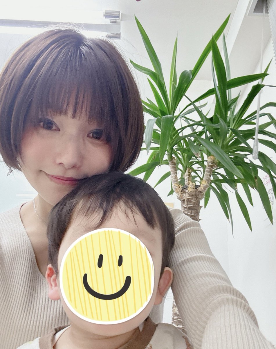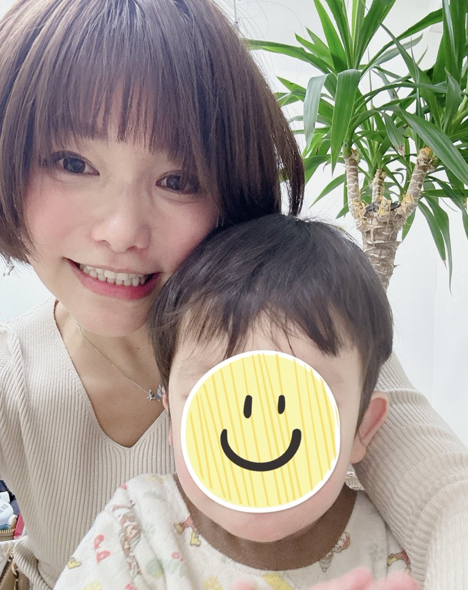 抱っこして母ちゃんと自撮りすると笑顔に。