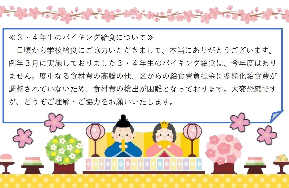 給食大好きな長女が、「楽しみにしていた“バイキング給食”が無くなった😭」と、凄くしょんぼりしています。 杉並区が給食無償化に際し、「多様化給食費」の上乗せを止めたのが原因のようです。 早速、「給食無償化による質の低下」が始まっていることを実感しています。 #杉並区