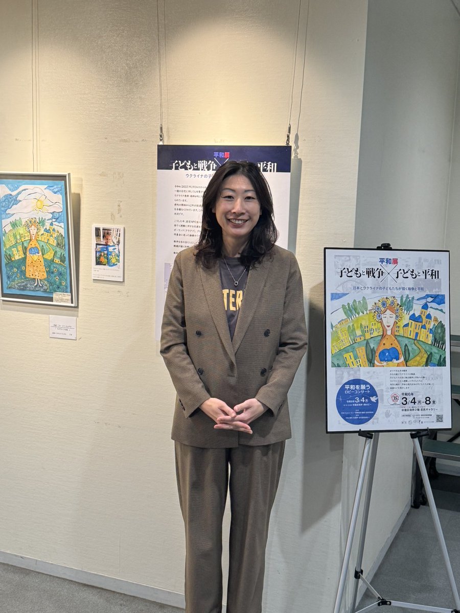 #杉並区 役所2階区民ギャラリー🕊平和展やっています。ウクライナでの戦禍を逃れた子どもたちの絵画や写真に深く引き込まれ、思いを馳せます。