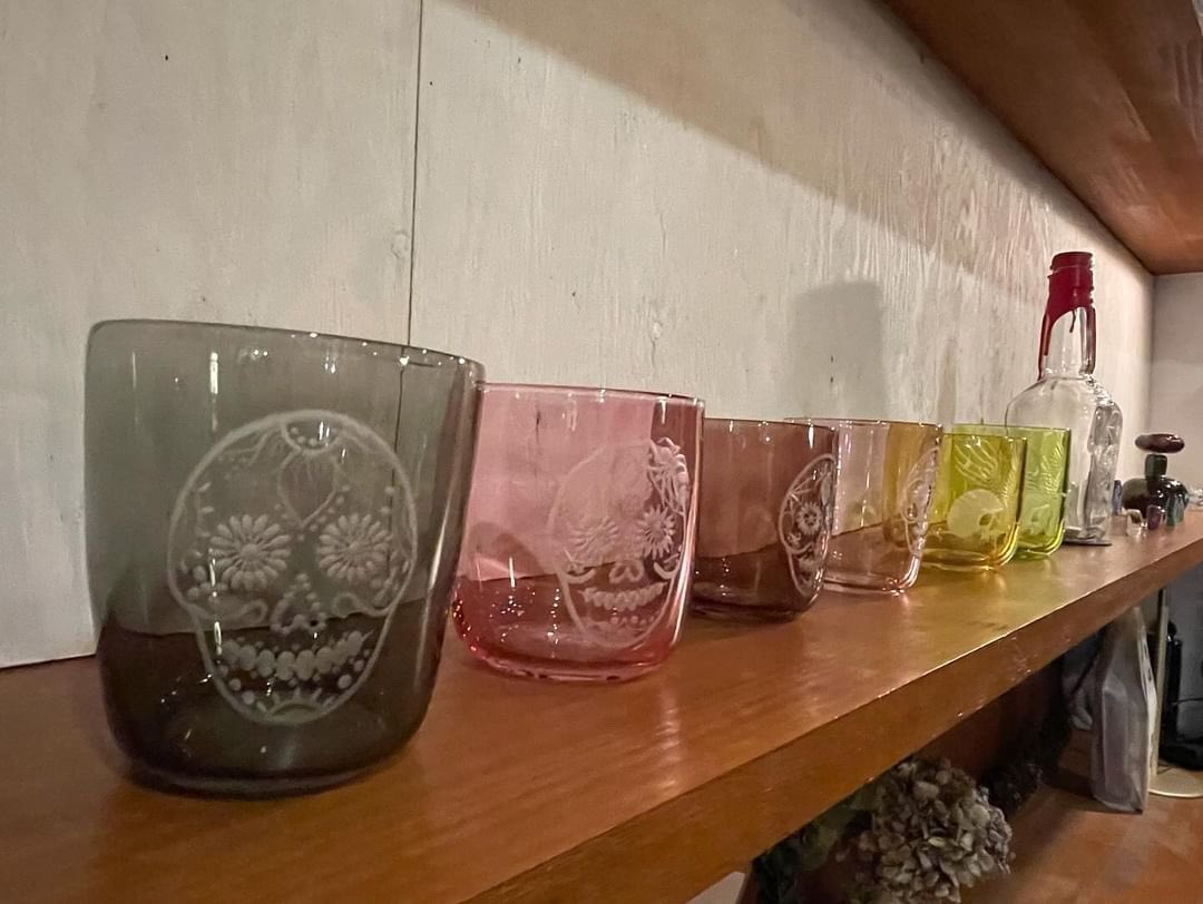 グラスやオブジェの他にTシャツや手拭いなどもござい〼