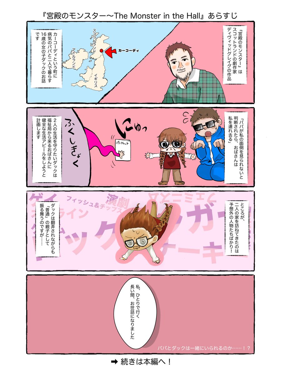【劇場創造アカデミー13期生修了上演】 「宮殿のモンスター」のあらすじを13期生大宮司星お手製の4コマ漫画にてご紹介! ぜひお読みください♪ 本編は劇場公演にて目撃を! #宮殿のモンスター #座13
