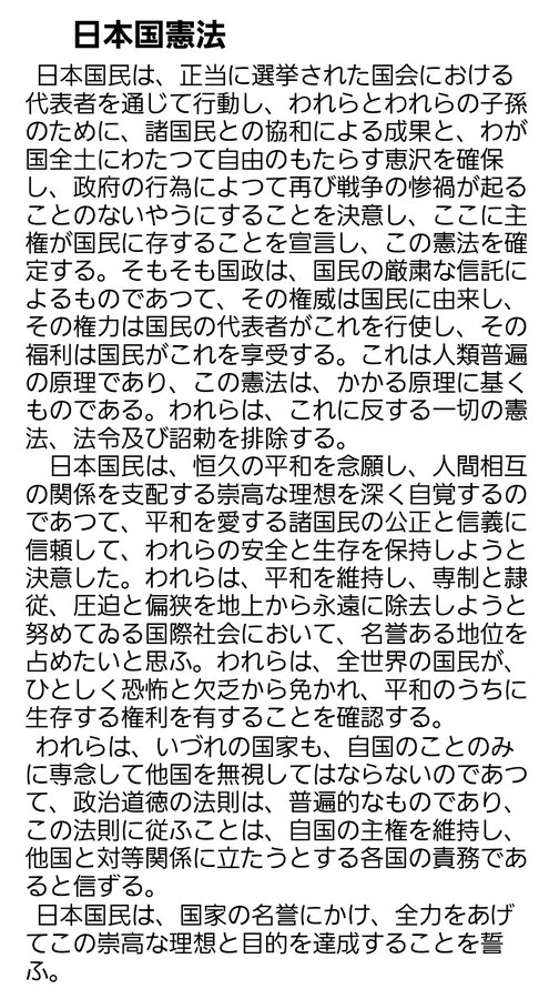 素晴らしいスピーチ憲法は国家権力を縛るものであり、この国に生きる人々の権利を守るもの!なぜ権力を縛るのかと言えば二度と戦争を起こさせないため。「~政府の行為によつて再び戦争の惨禍が起ることのないやうに..