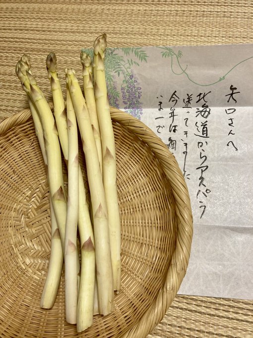 地域の方からいただいた北海道産ホワイトアスパラ。手紙を書くことが少なくなった昨今、心のこもった筆書が嬉しいです。