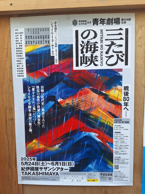 青年劇場の『三たびの海峡』が昨日から紀伊國屋サザンシアターで始まってます!原作は帚木蓬生。戦時中に朝鮮から九州の炭鉱に強制連行された河時根が主人公です。今も筑豊の石炭記念館や歴史博物館には「強制連行」..