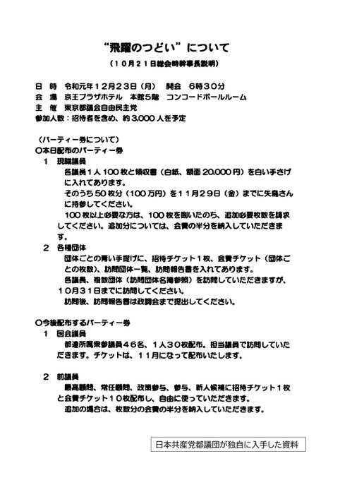 #杉並区選出の自民党の都議会議員は小宮あんり議員(250万円)と早坂よしひろ議員(214万円)。()内金額は、2019年と2022年の2回のパーティーでの不記載額。50枚×2万円=100万円は担当者に..