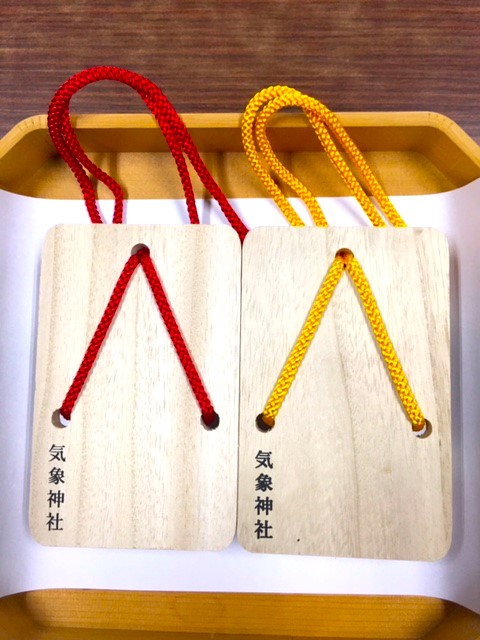 ◆気象神社の授与品紹介①下駄絵馬(赤・黄)◆下駄絵馬は気象神社の授与品で最も歴史があります。昔は明日の天気を占う時に、下駄やサンダルを投げていました。境内には参拝者の祈願が込められた下駄絵馬でいっぱい..