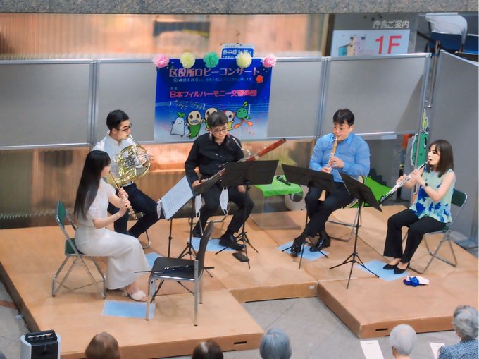 /#日本フィル#ロビーコンサートin杉並区役所\クラシックを中心に木管五重奏で音楽を楽しむ40分小さなお子様からご年配の方まで、贅沢なひとときをお楽しみください7/1(月)12:10~12:50区役所..