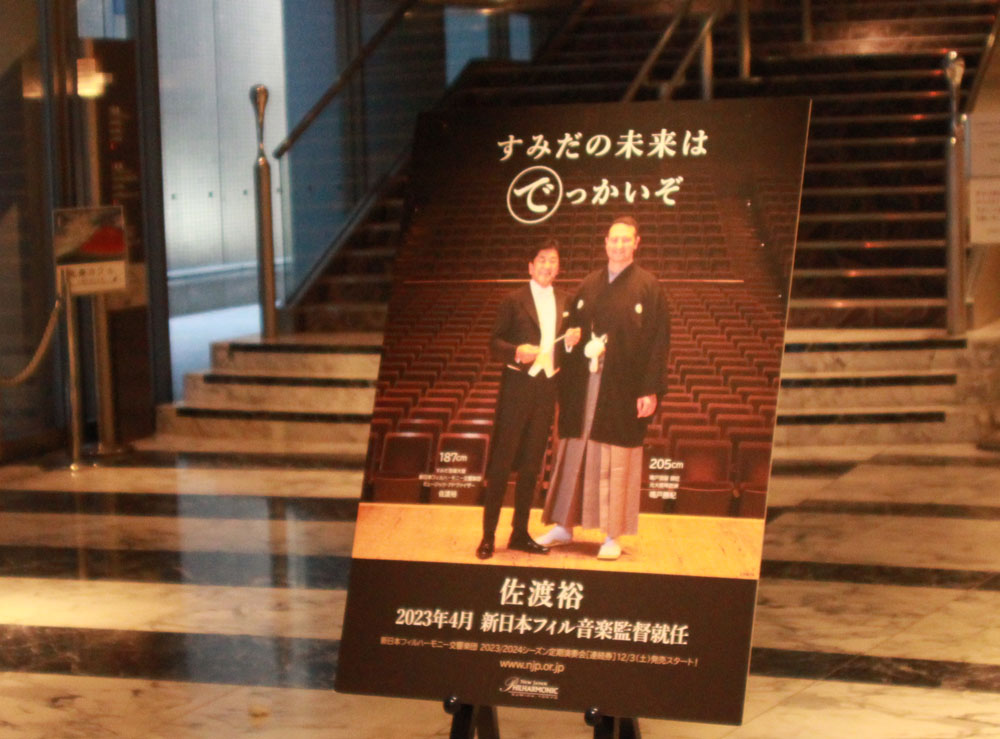『ぶらあぼ』(2022年9月号)の表紙や「すみだの未来はでっかいぞ」ポスターでおなじみ、#佐渡裕 と #鳴戸親方 のでっかいツーショット。 本日の #第九 には鳴戸部屋ご一行様がご来場!ロビーや客席でお姿を見て嬉しそうにされていたファンのお姿も。 #新日本フィル第九 #佐渡第九 #sadono9