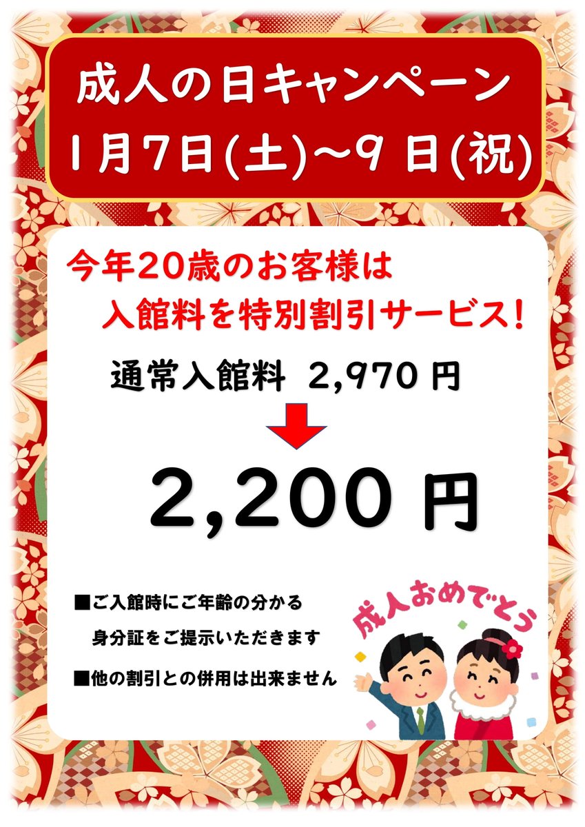 1/7(土)~1/9(祝)の3日間は20歳の方がおトク‼