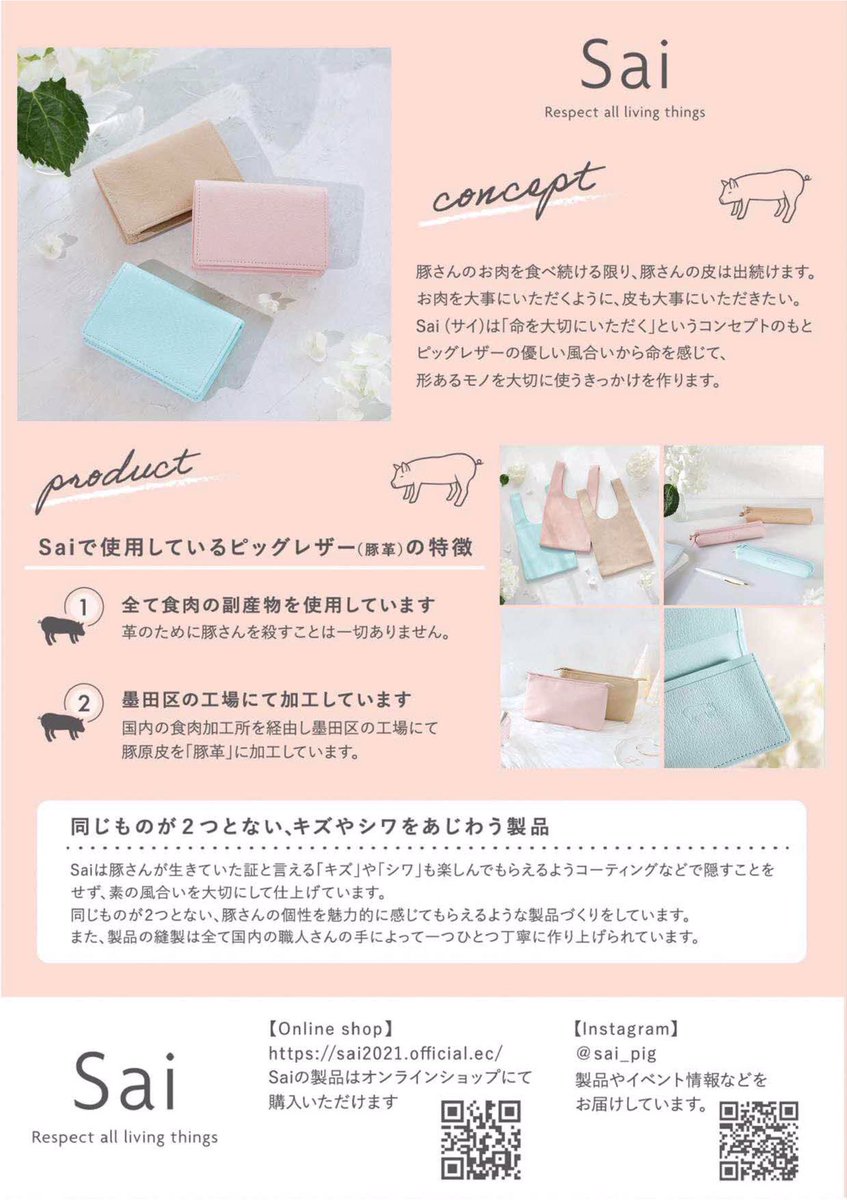 【SHOP&WORKSHOPすみずみ 🐷✨】 表の素材として使われることが少ないピッグレザーを扱うブランド『Sai』が、すみずみ2階で展示販売会を実施します❗️ キズやシワも個性として楽しんでもらえるよう、素の風合いを大切に仕上げられた商品をぜひお楽しみ下さい😊 #すみだモダン #墨田区 #ものづくり