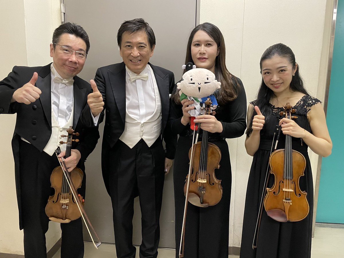 📸伝田正秀コンマス、藤岡幸夫マエストロ、周防亮介さんwith #出世大名家康くん 、アシスタントコンマス立上舞。