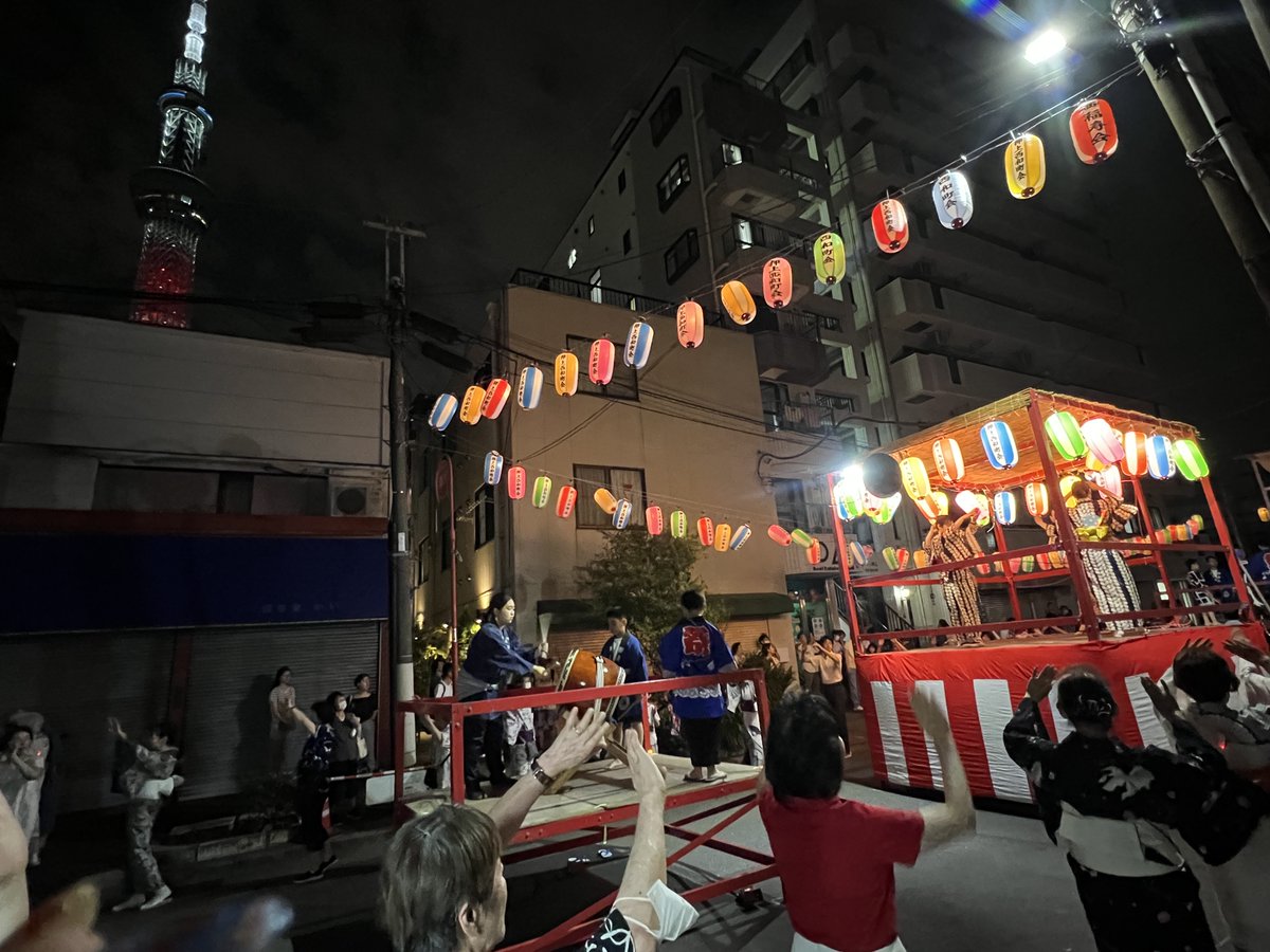 東京スカイツリーの足元、#押上西和町会 の #盆踊り 大会に参加しました。4年ぶりの開催で、久しぶりに会う人たちと声を掛け合ったり、近況を話し合ったりしました。 今週末から、続々と開かれ盆踊りがシーズン本番を迎えます。
