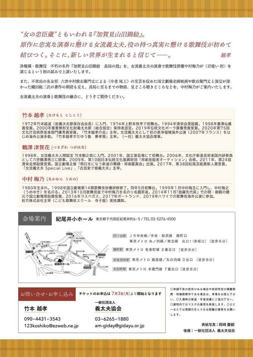 〈竹本越孝の會〉『加賀見山旧錦絵 長局の段』の稽古を初めて竹本越孝師・鶴澤津賀花師とご一緒に。本行のイキにこちらが乗って演じるのが今回の趣旨。現行歌舞伎の演技・段取りとは大きく変わるので、間の取り方をしっかり確認させていただきました。ただいま好評販売中!ご来駕お待ちしております!