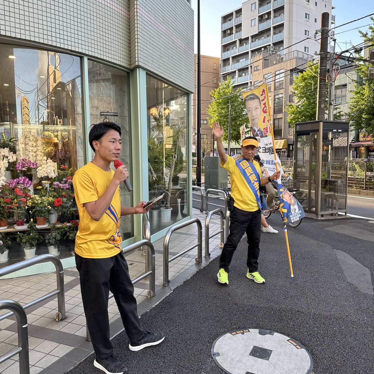 荒川区は町屋で、学生の熱い熱い訴え&沢山の方に政策ビラをお手に取っていただいております!