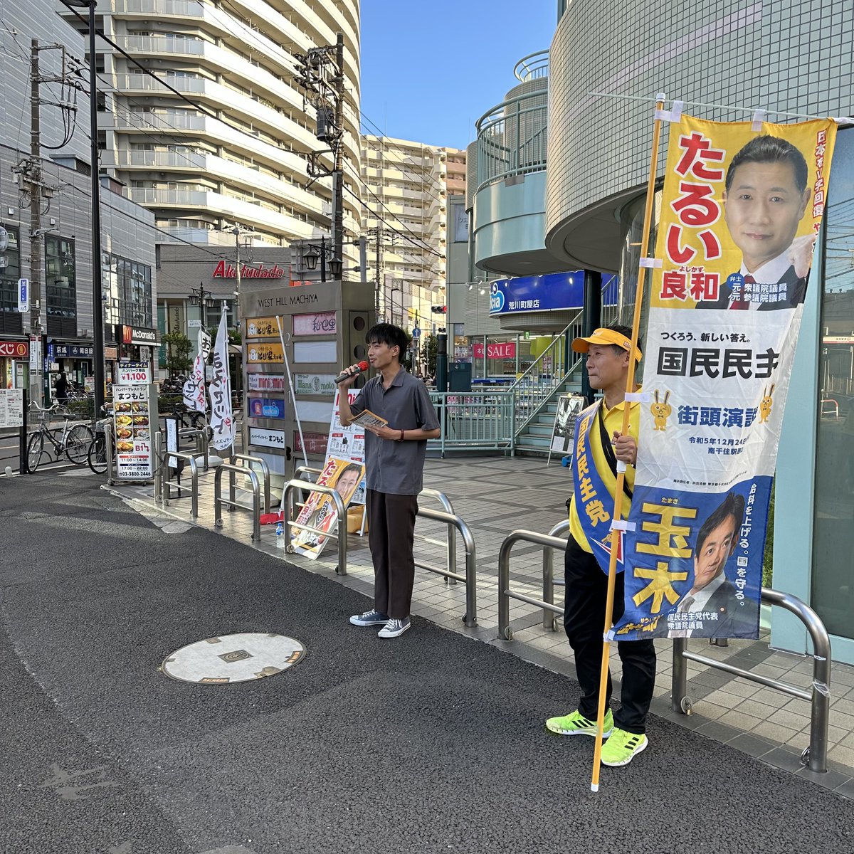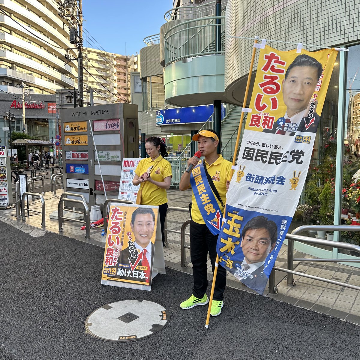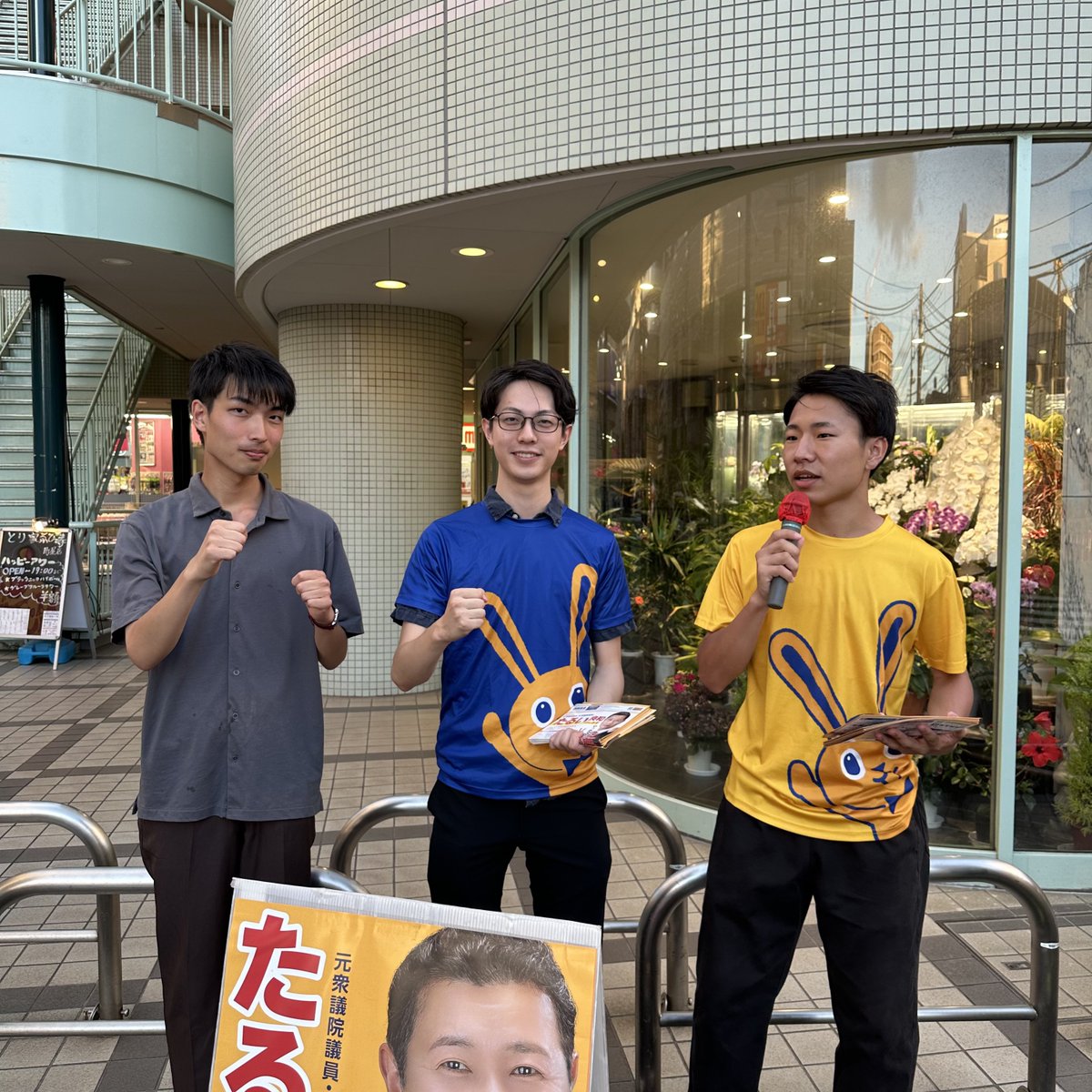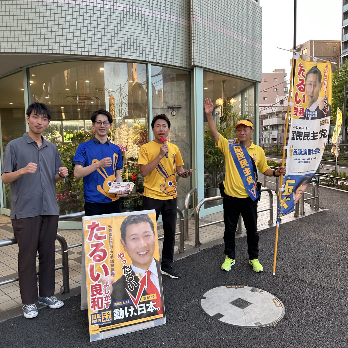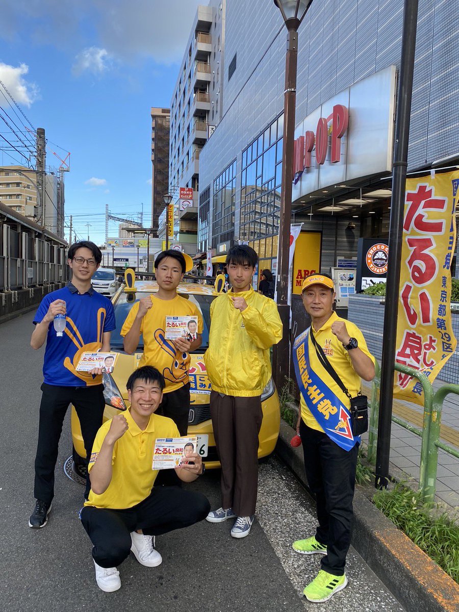 ここ荒川区(東京都第29区)の公認候補予定者である、たるい良和さんにも応援に駆けつけていただき、6名で19時まで元気に活動していきます!