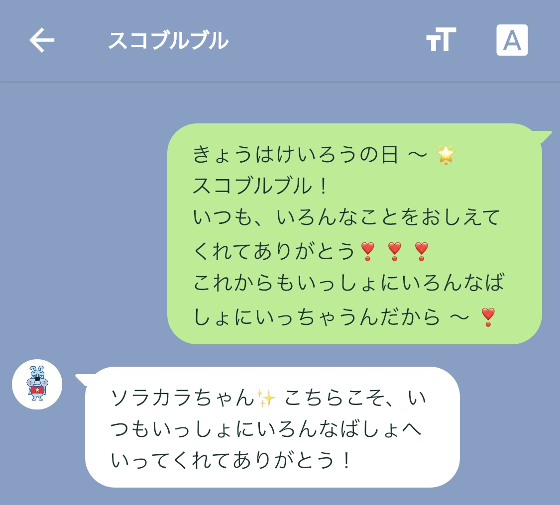 \ 今日は #敬老の日 / 特別にソラカラちゃんとスコブルブルの メッセージのやり取りを覗かせてもらいました👀 #東京スカイツリー #skytree #ソラカラちゃん #スコブルブル