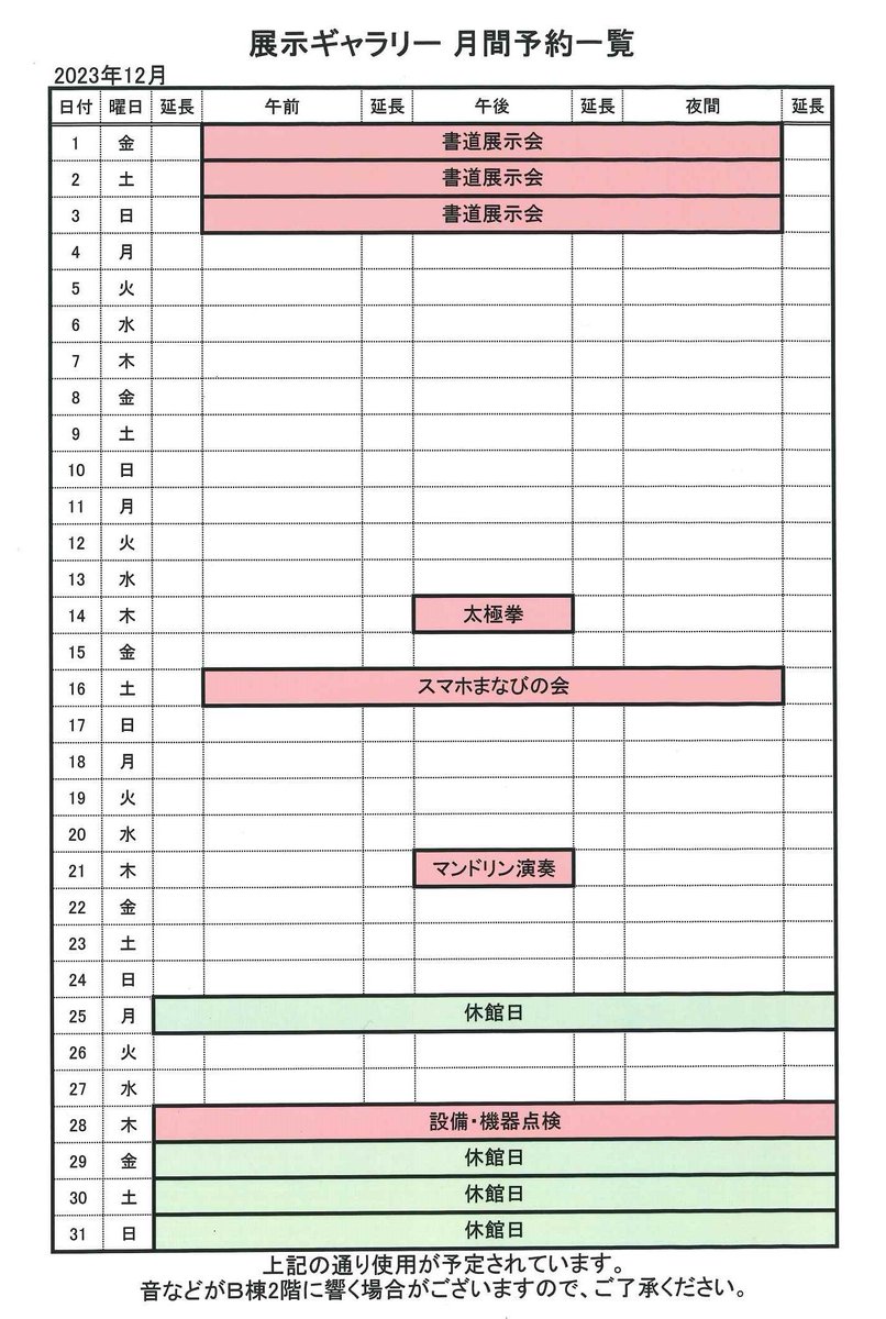 【12月の展示ギャラリーの利用について】