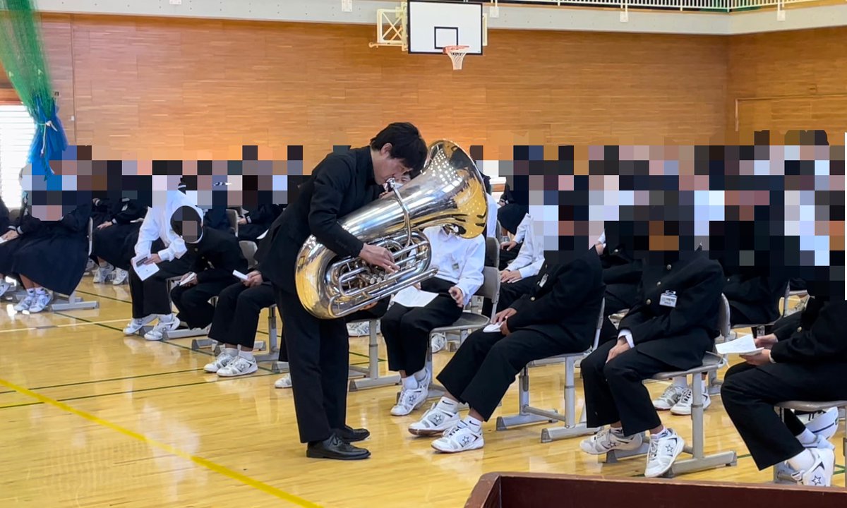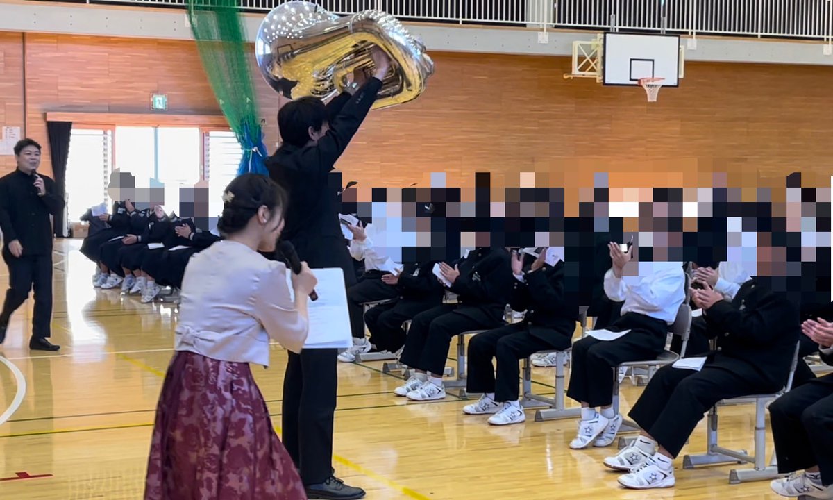 楽器紹介では、首席チューバ奏者・佐藤和彦がみなさんの近くまで行って、チューバの音をお届けしました💪
