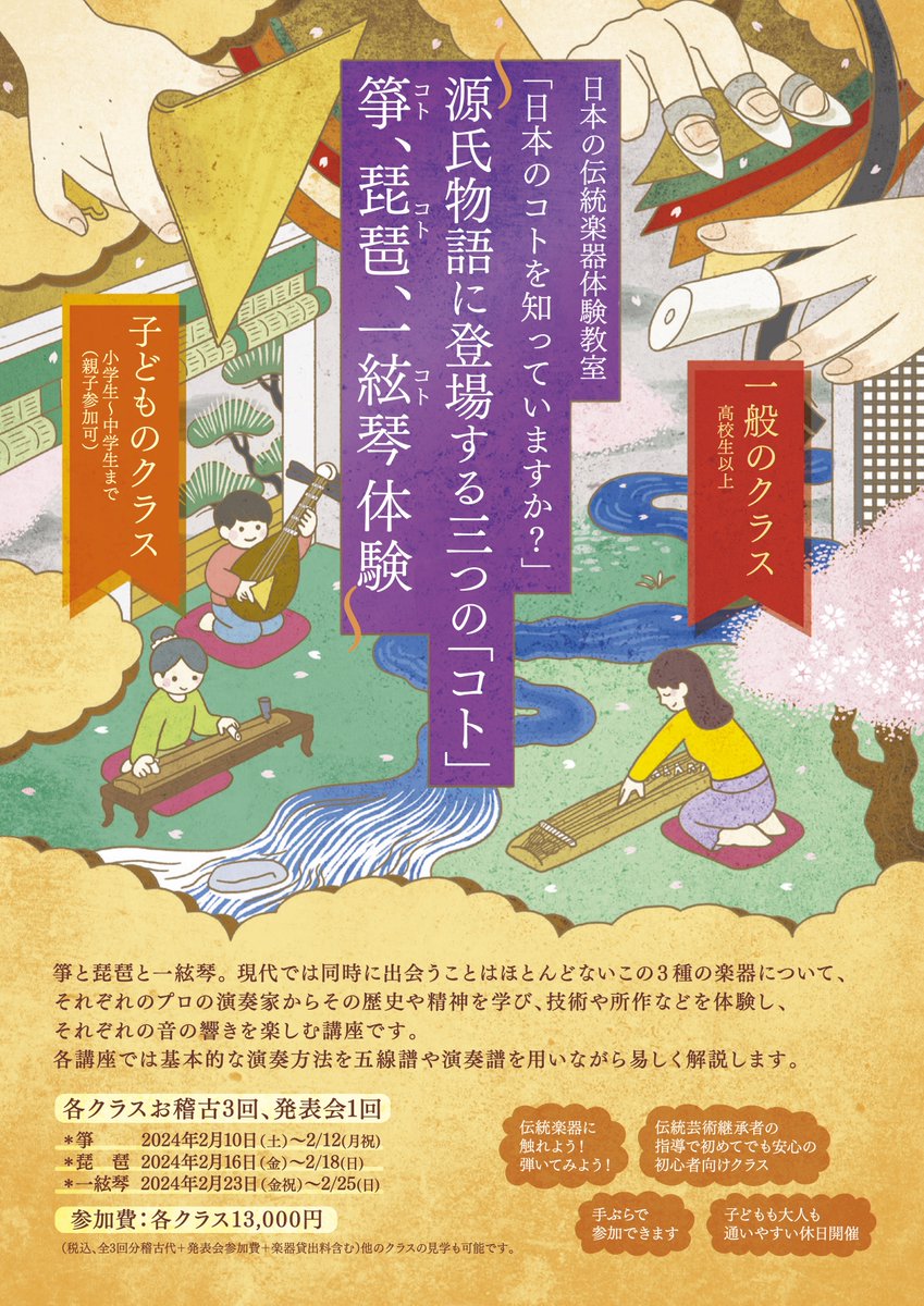 伝統楽器体験教室(お稽古3回、発表会1回)